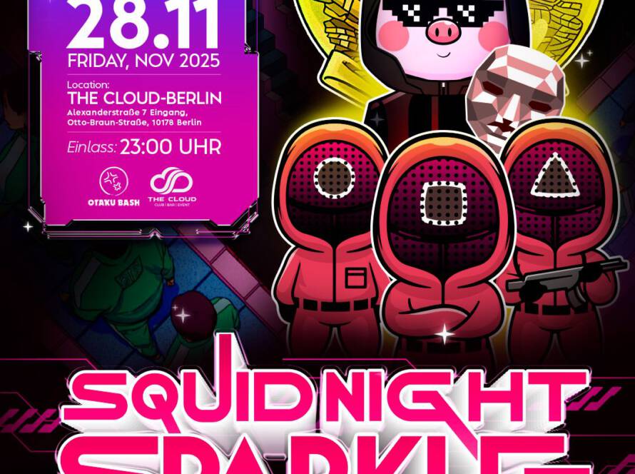 🦑 Anime & Cosplay Party – SQUID NIGHT SPARKLE Am Freitag, 28.11.2025 verwandelt sich The Cloud Berlin in eine stylische Survival-World – inspiriert von Squid Game & Anime Culture! 📍The…