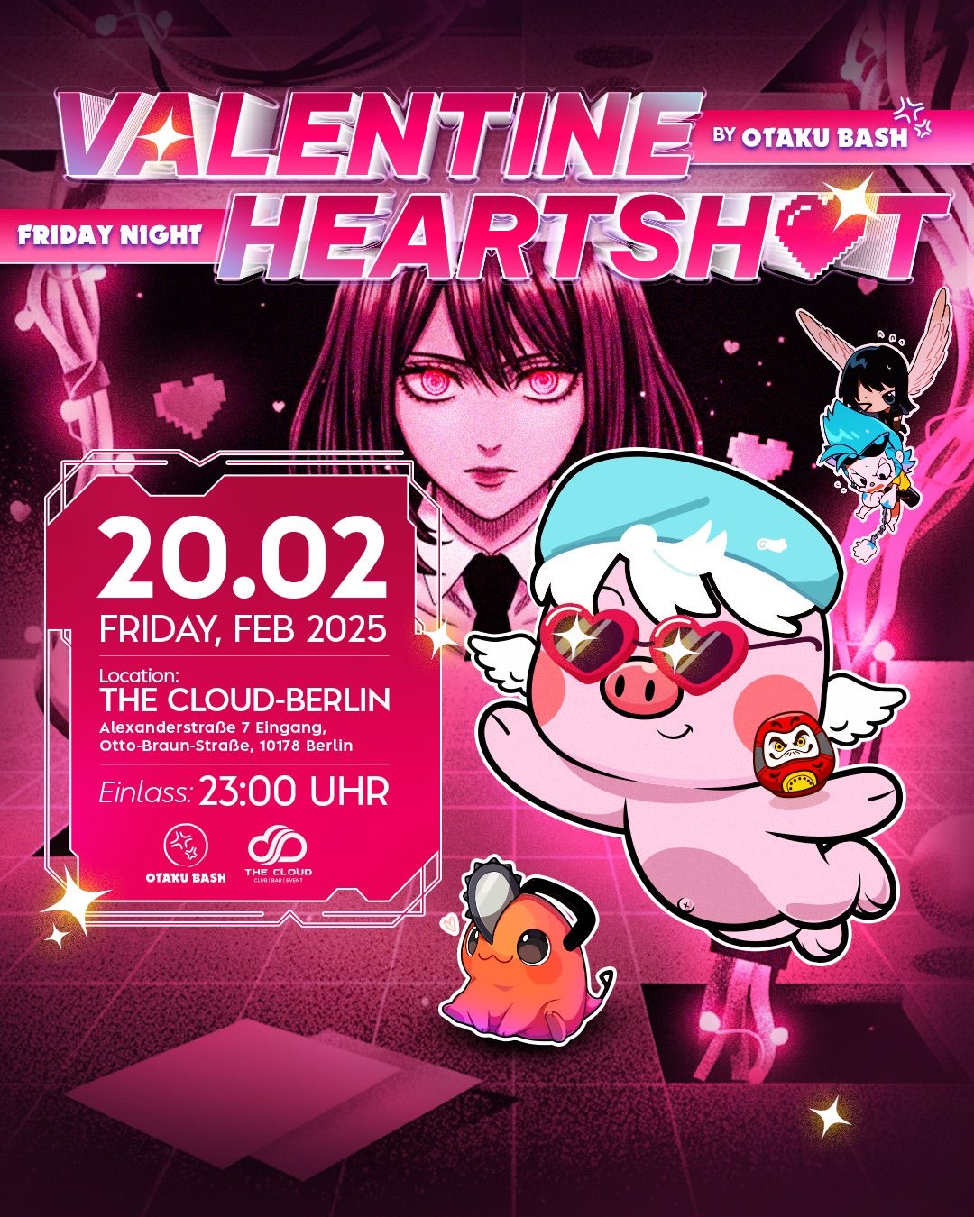 Am Freitag, 20.02.2025 feiern wir die romantischste Otaku Party des Jahres im The Cloud Berlin.